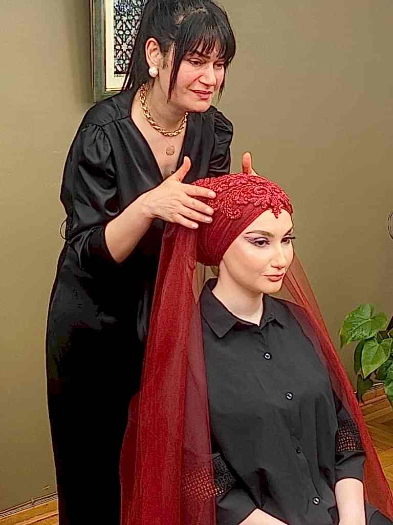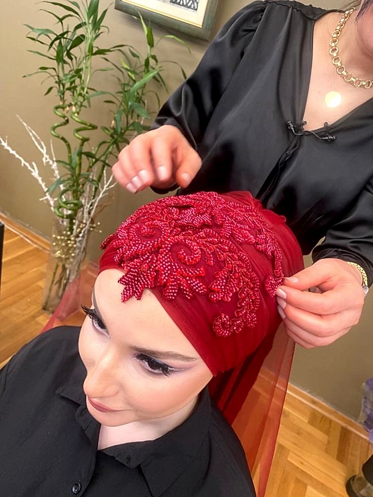 • Özel Gün Türban Tasarımı: Düğün, kına, nişan gibi özel günler için farklı türban modellerinin tasarımı.